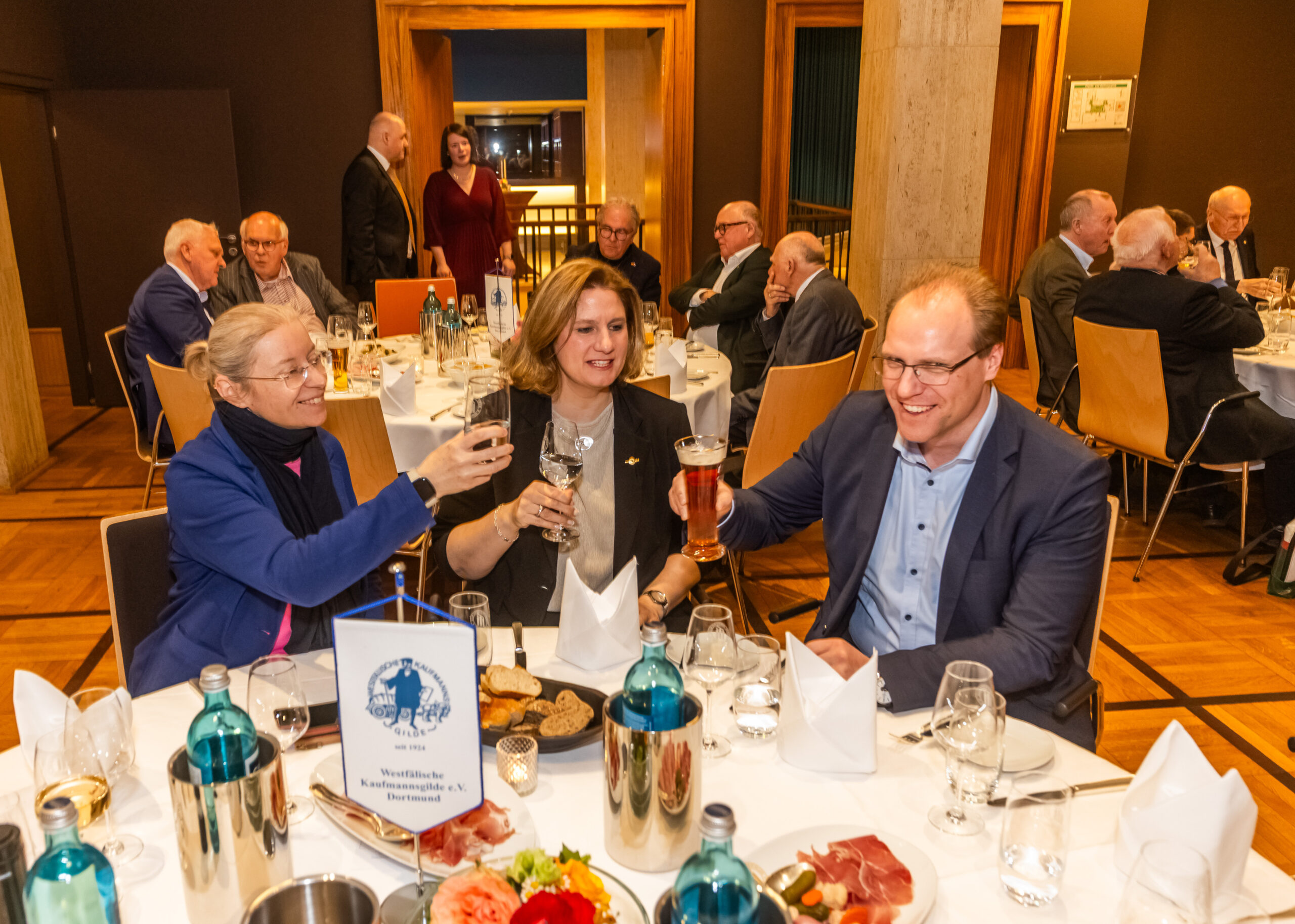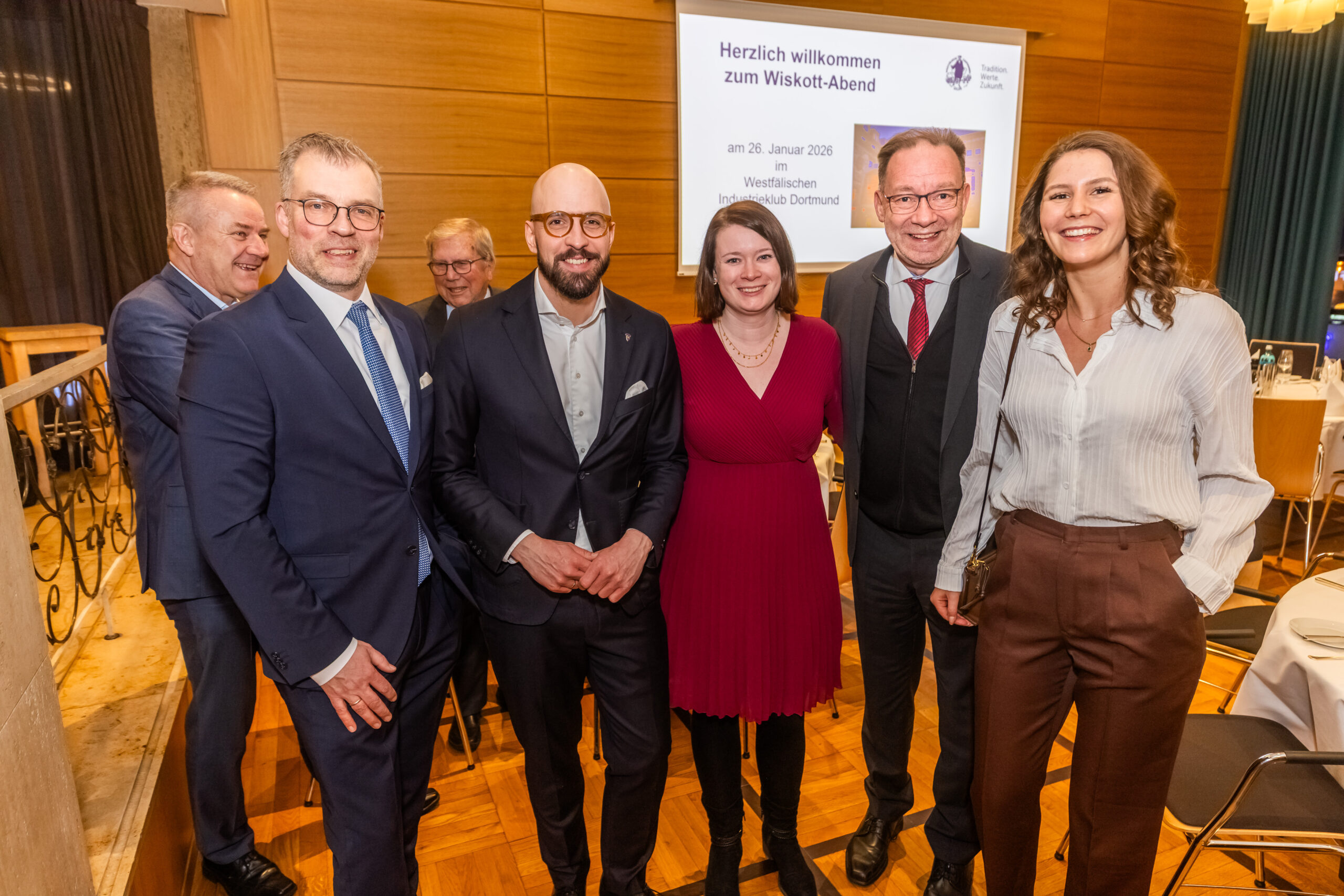 Am Abend des 26. Januar 2026 lud die Westfälische Kaufmannsgilde zum traditionellen Wiskott-Abend ein. Zahlreiche Gildnerinnen und Gildner sowie Gäste folgten der Einladung. Begrüßt wurden sie vom Vorsitzer Carsten Jäger und seinem Vorstandsteam mit den stellvertretenden Vorsitzerinnen Katja Kortmann und Britt Lorenzen sowie den Beisitzern Mike Therolf und Ralph Weber.