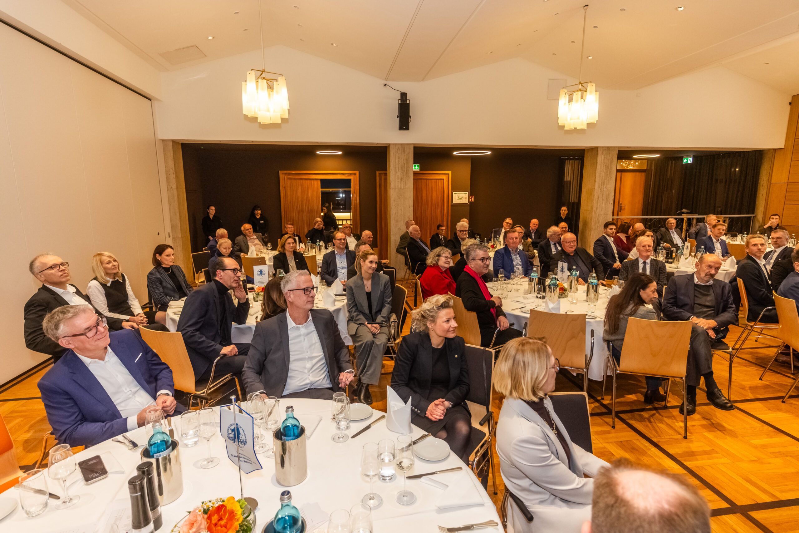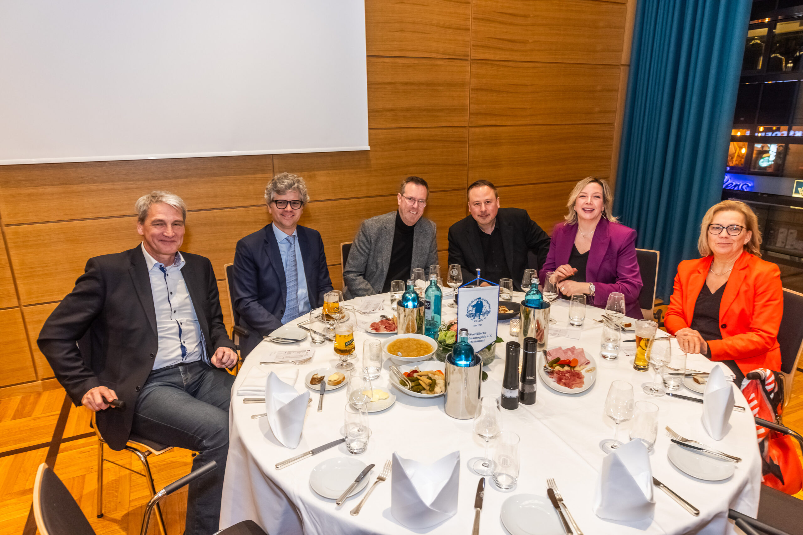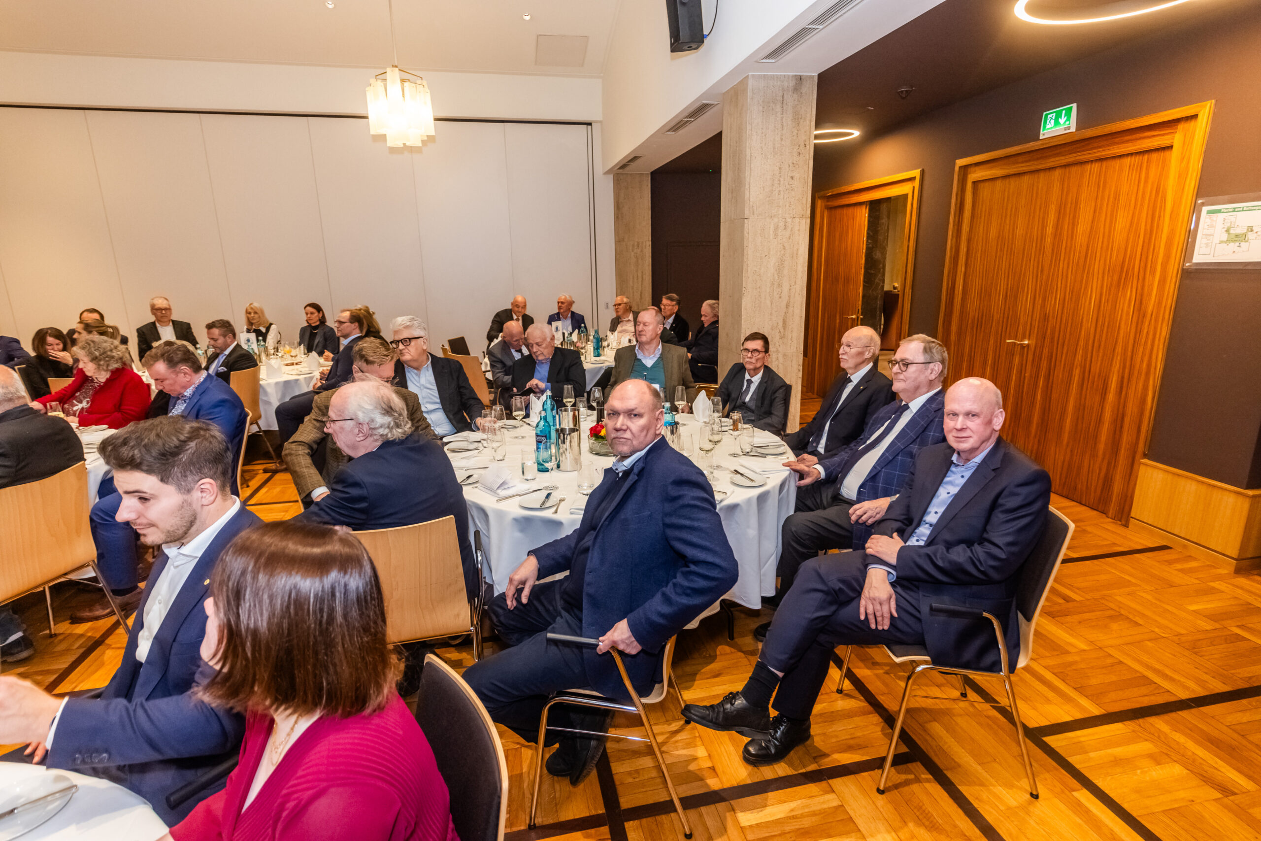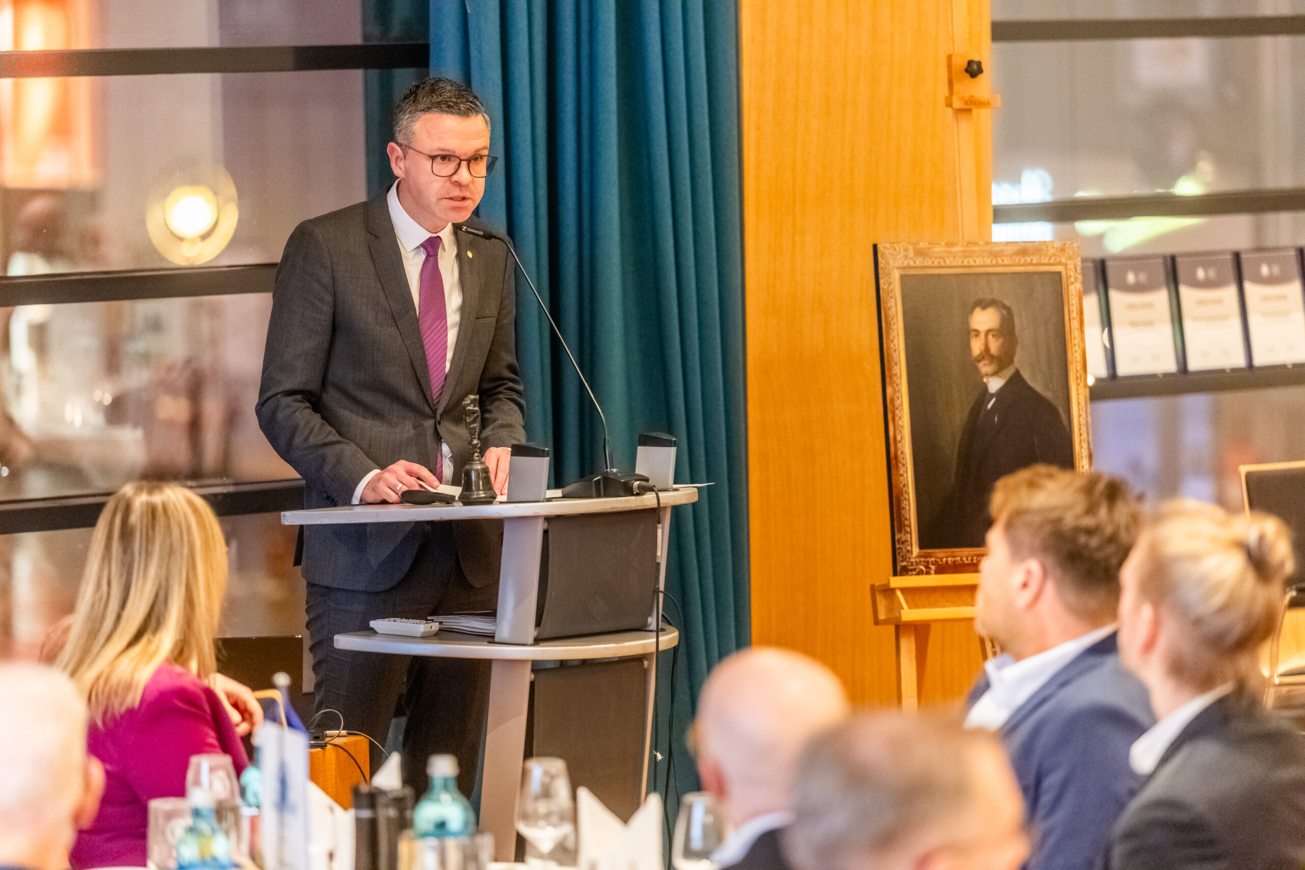 Zu Beginn des Abends blickte Jäger gemeinsam mit Kortmann und Lorenzen auf das vergangene Jahr zurück. Dieses sei sowohl auf internationaler als auch auf nationaler Ebene von Unsicherheiten und Umbrüchen geprägt gewesen, so der Leiter Unternehmenskommunikation bei der Dortmunder Volksbank. In seiner Ansprache ordnete Jäger zudem die aus seiner Sicht positiven wie auch herausfordernden wirtschaftlichen Entwicklungen für den Standort Dortmund ein, ließ die vergangenen zwölf Monate Revue passieren und gab den Anwesenden einen Ausblick auf das Jahr 2026.